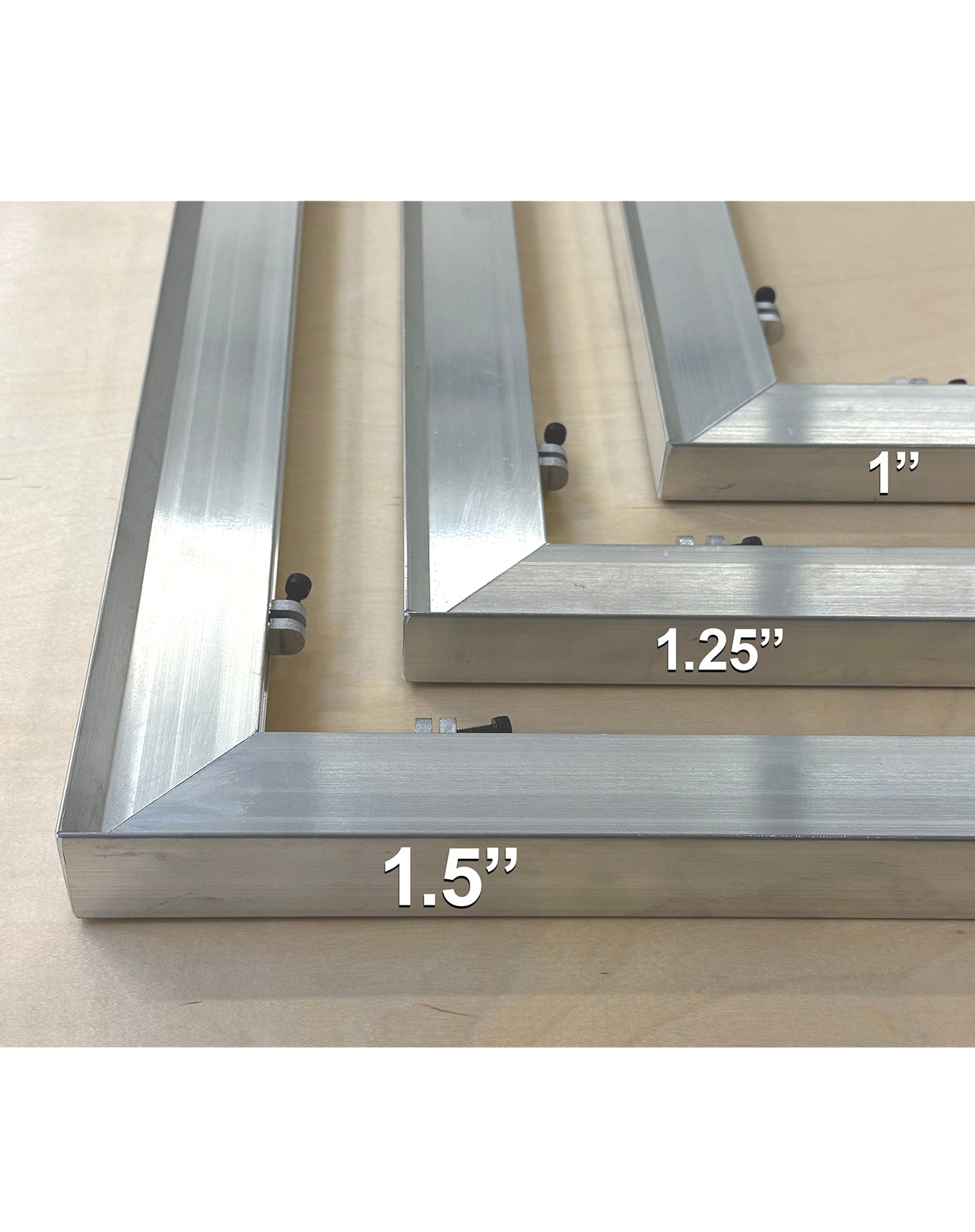 - The Hybrid profile: This versatile aluminum profile is designed to use a wooden edge which allows for any depth stretcher, and for wooden panels.